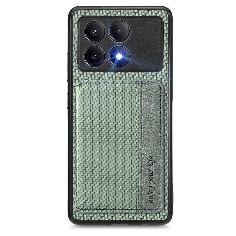 Για Xiaomi Poco X6 Pro Carbon Fiber μαγνητική κάρτα τσάντα υπόθεση τηλεφώνου (πράσινο)