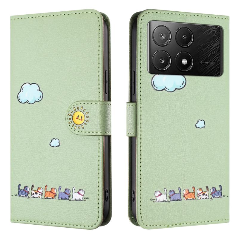 For Xiaomi Poco X6 Pro Cartoon Cats Leather Phone Case(Green)
