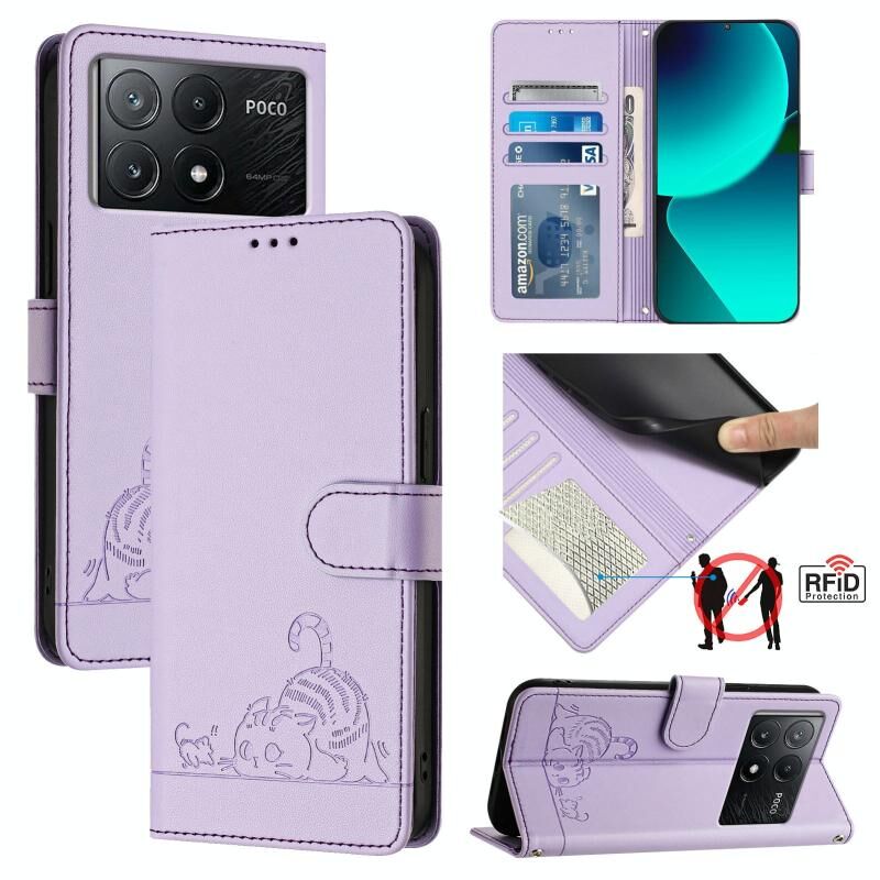 Θήκη Xiaomi Poco X6 Pro με σχέδιο γάτας/ποντικιού και λουρί καρπού (Μωβ)