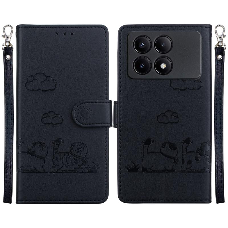 For Xiaomi Poco X6 Pro Cute Cats RFID Leather Phone Case(Black)