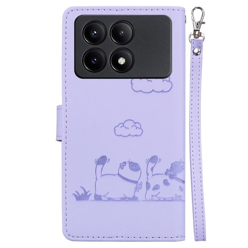 Θήκη τηλεφώνου από δέρμα με χαριτωμένες γάτες RFID για Xiaomi Poco X6 Pro (Μωβ)