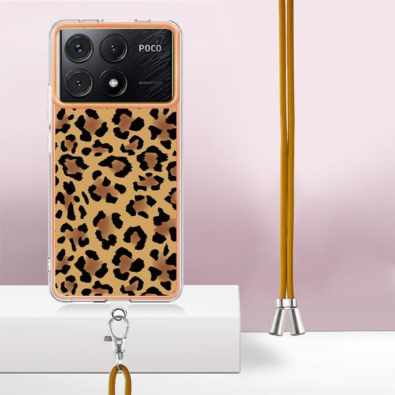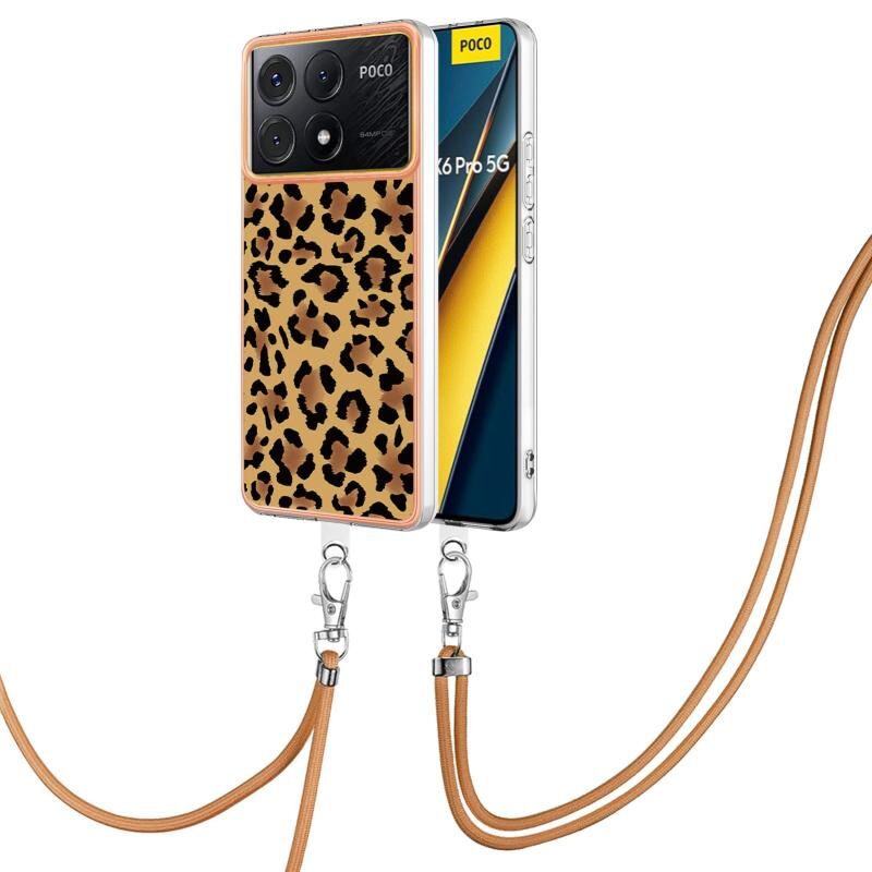 Θήκη Xiaomi Poco X6 Pro με Επιμετάλλωση και Λουρί (Σχέδιο Λεοπάρ)