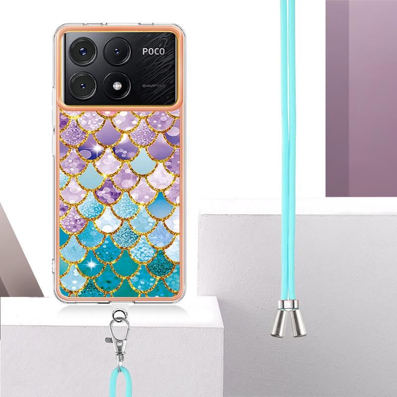 Θήκη τηλεφώνου Xiaomi Poco X6 Pro με γαλβανισμό IMD TPU με κορδόνι (Πολύχρωμες Λέπια)