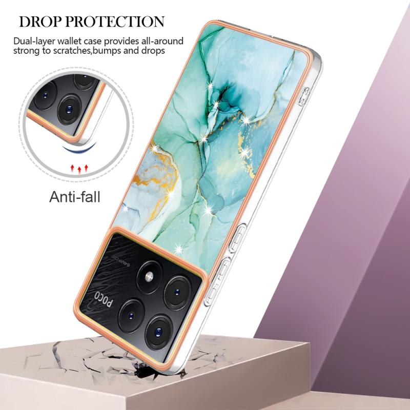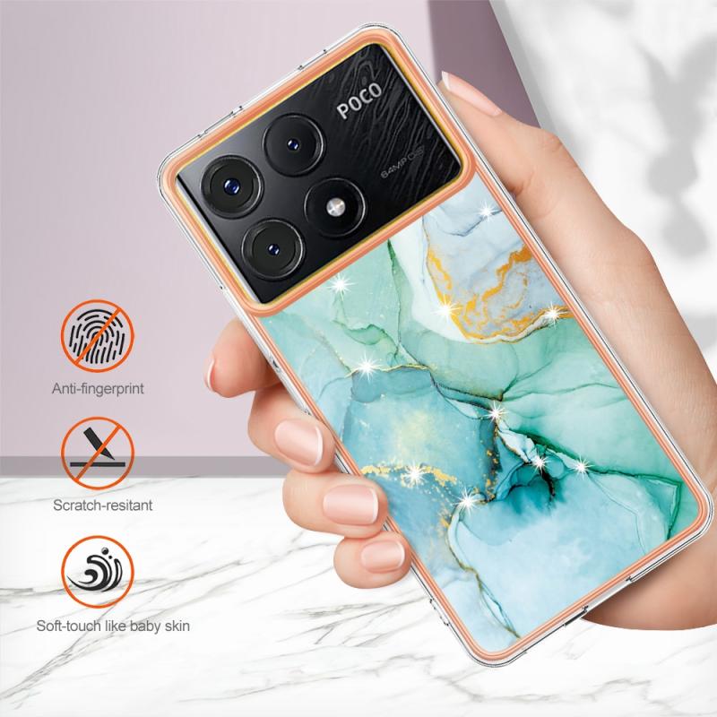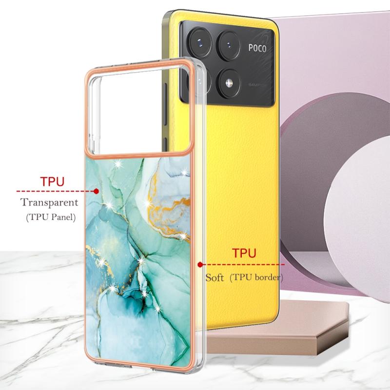 For Xiaomi Poco X6 Pro Electroplating Marble Dual-side IMD Phone Case(Green 003)