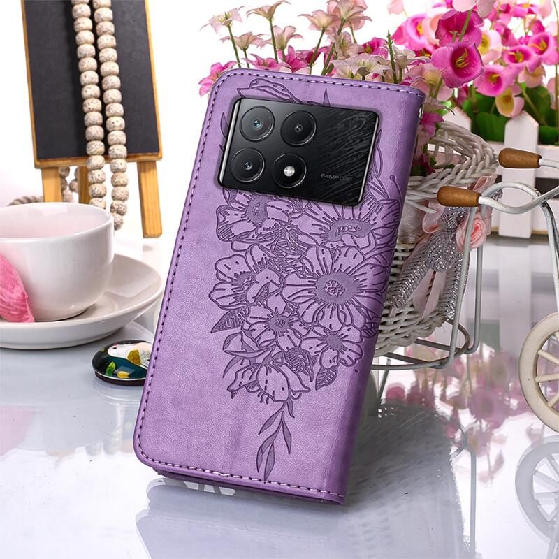 Για Xiaomi Poco X6 Pro ανάγλυφη πεταλούδα δερμάτινη θήκη τηλεφώνου (μωβ)