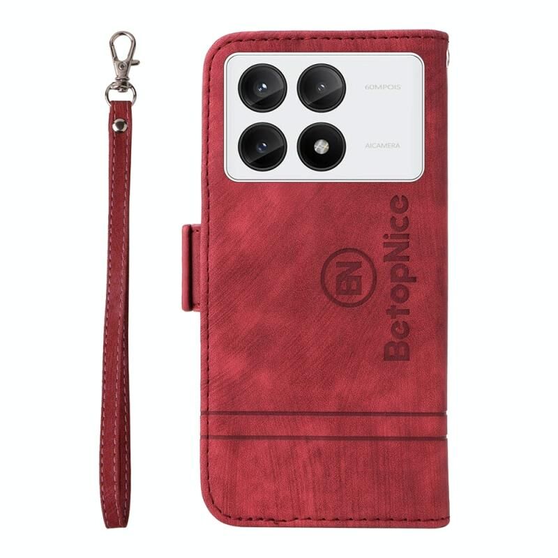 Για Xiaomi Poco X6 Pro / Redmi K70E 5G BETOPNICE Δερμάτινη θήκη τηλεφώνου με αγκράφα διπλής όψης (κόκκινο) (BETOPNICE)