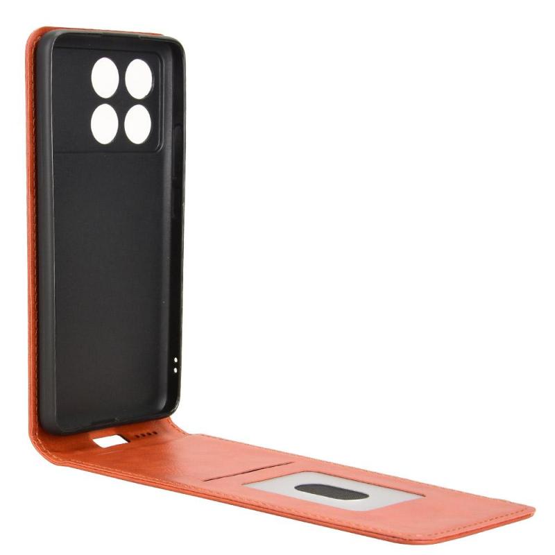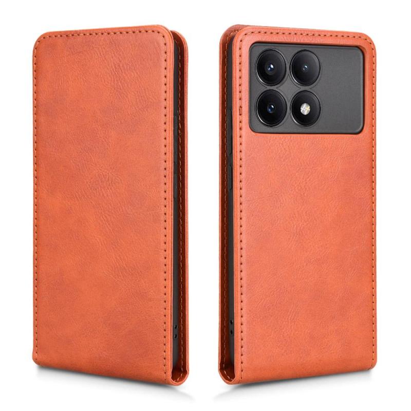 For Xiaomi Poco X6 Pro / Redmi K70E 5G Magnetic Vertical Flip Leather Phone Case(Brown)