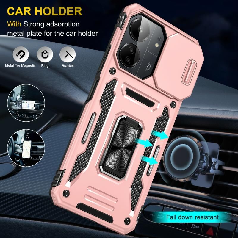 Για Xiaomi Poco X6 Pro / Redmi K70E θωράκιση PC + TPU κάμερα ασπίδα τηλέφωνο υπόθεση (Rose Gold)
