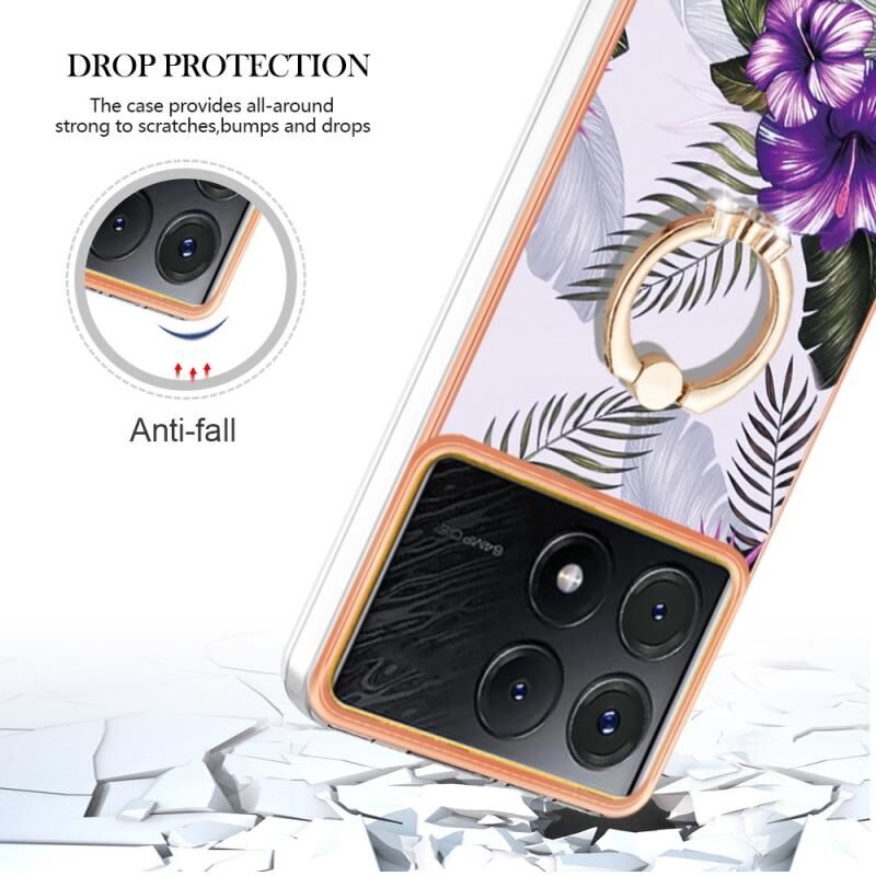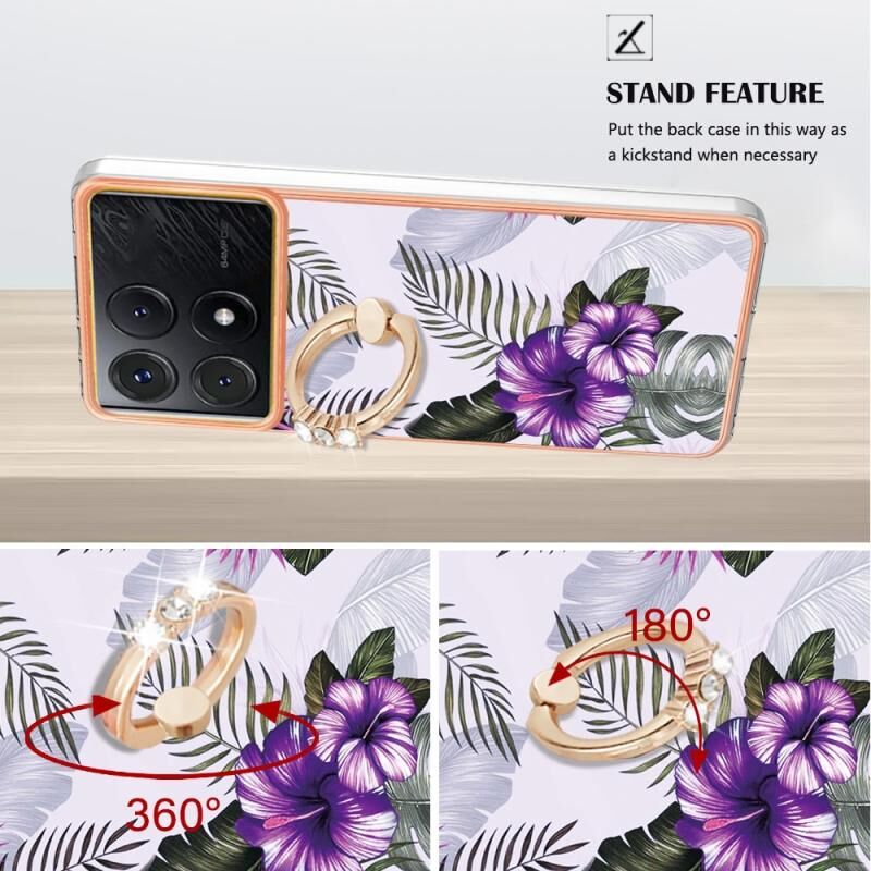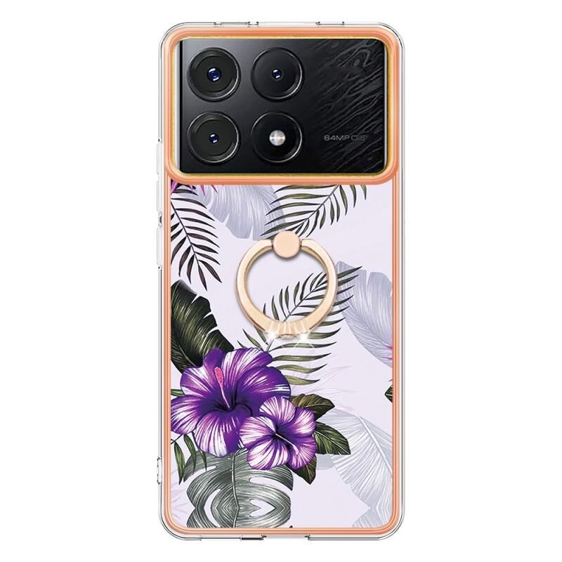 For Xiaomi Poco X6 Pro / Redmi K70E Electroplating IMD TPU Phone Case with Ring(Purple Flower)