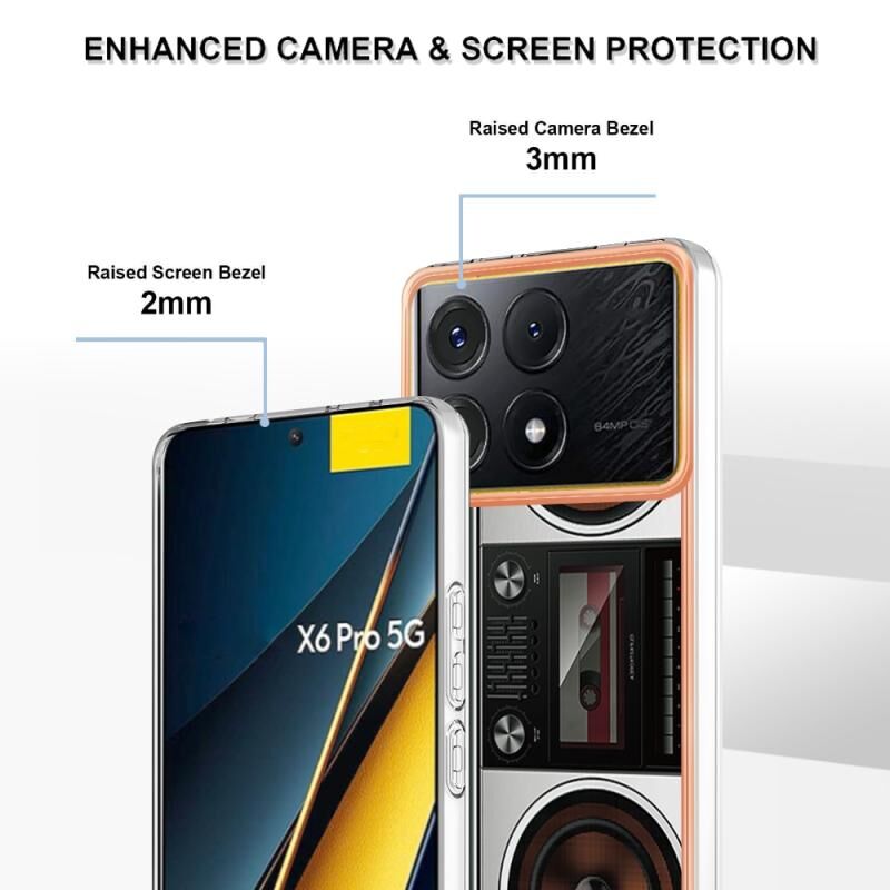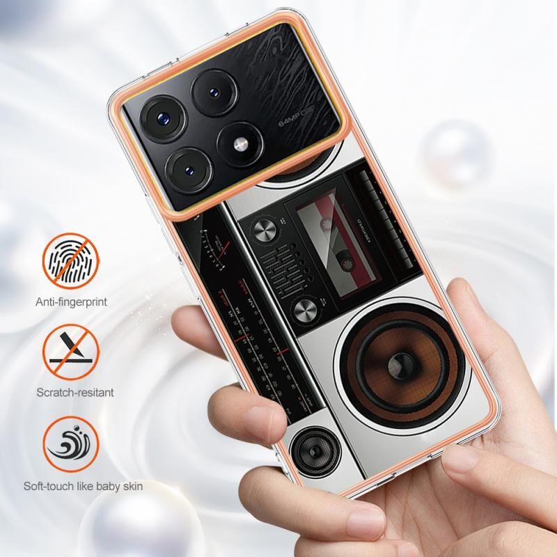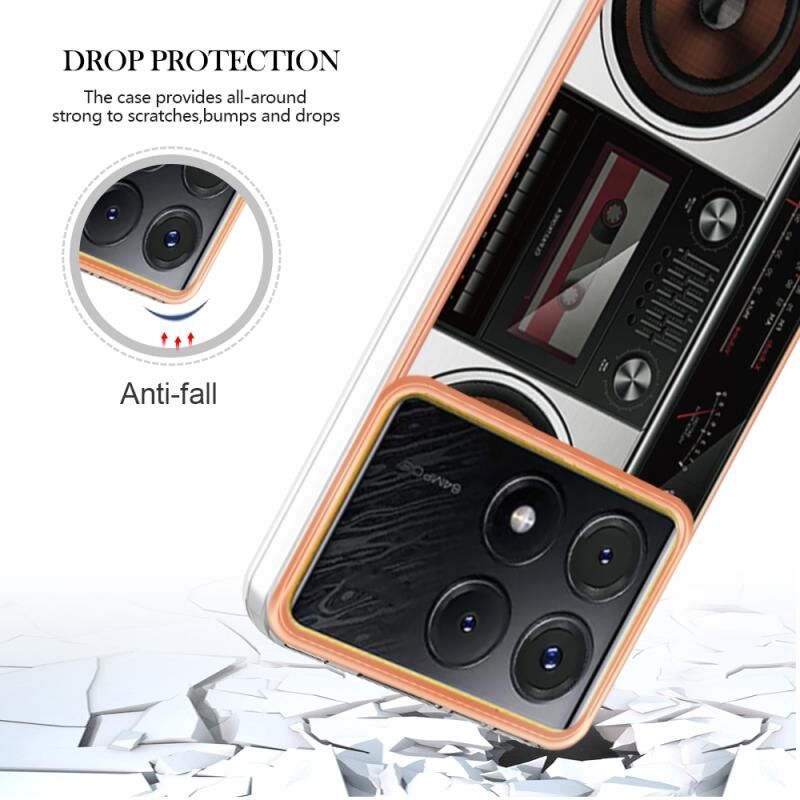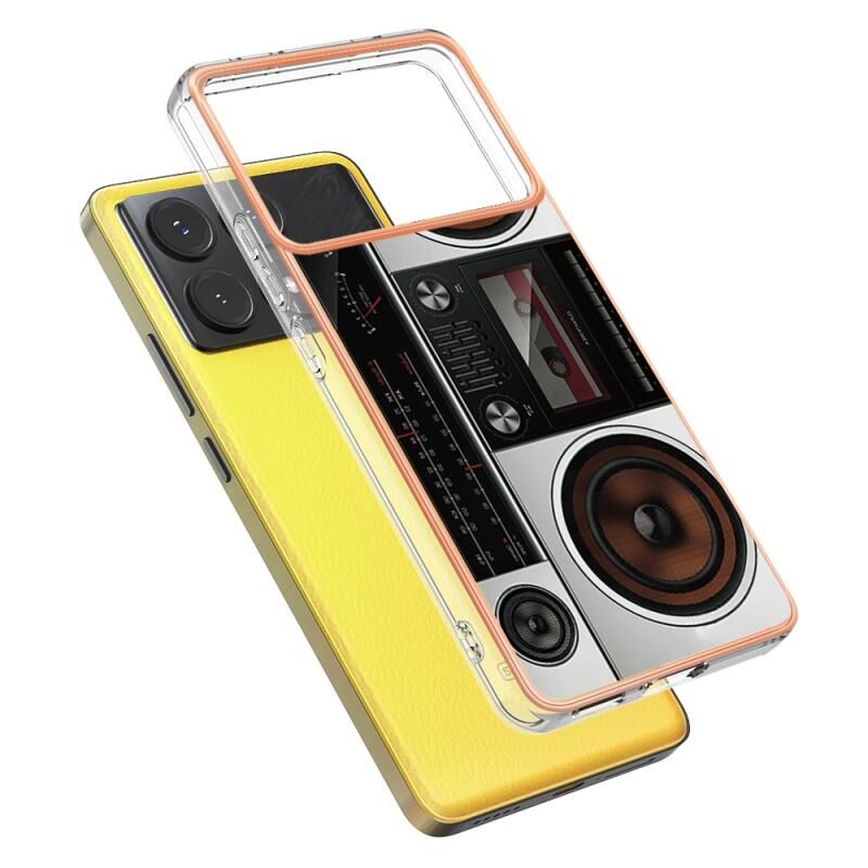 Θήκη τηλεφώνου με ηλεκτρολυτική μαρμάρινη όψη διπλής όψης IMD για Xiaomi Poco X6 Pro / Redmi K70E (Ρετρό Ραδιόφωνο)