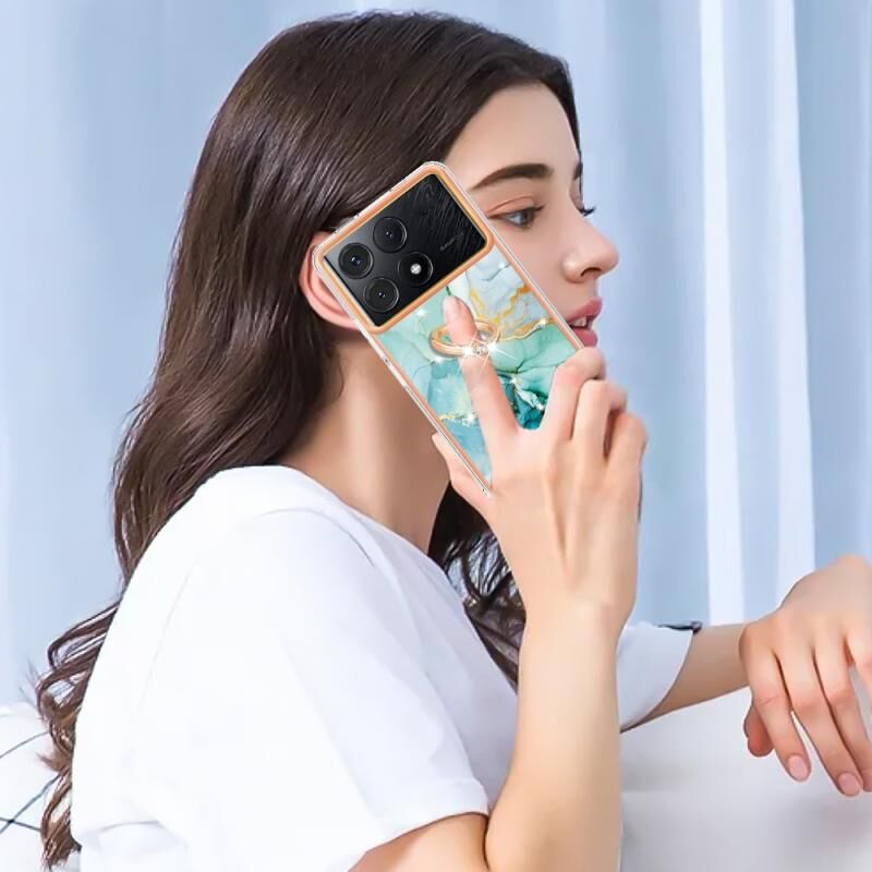 Θήκη τηλεφώνου Xiaomi Poco X6 Pro / Redmi K70E με Ηλεκτρολυτική Επικάλυψη, Μάρμαρο IMD, TPU και Δακτύλιο Στήριξης (Λευκό 006)
