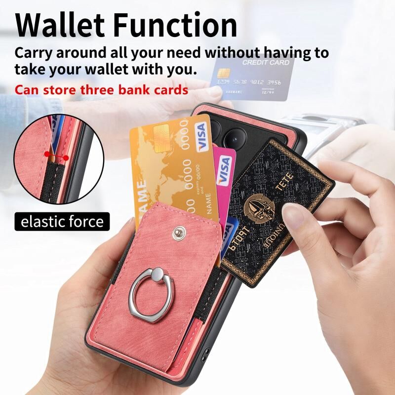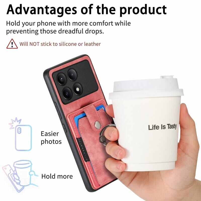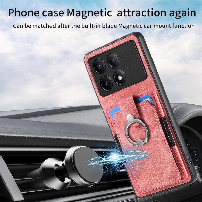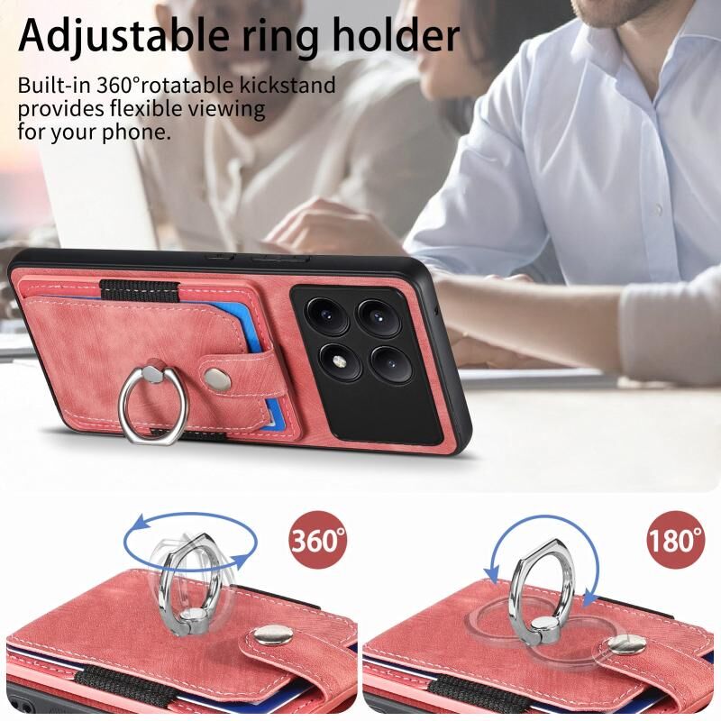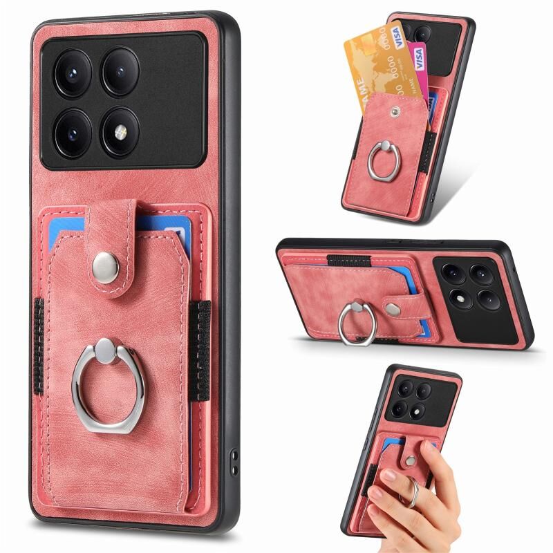 Για Xiaomi Poco X6 Pro Ρετρό δέρμα αίσθηση δαχτυλίδι κάρτα πορτοφόλι τηλέφωνο υπόθεση (ροζ)