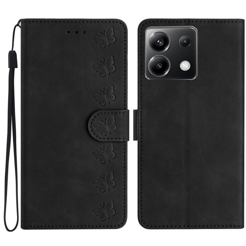 For Xiaomi Poco X6 Seven Butterflies Embossed Leather Phone Case(Black)