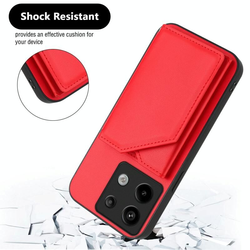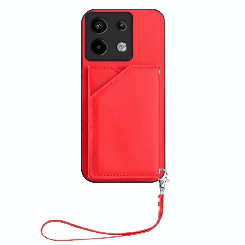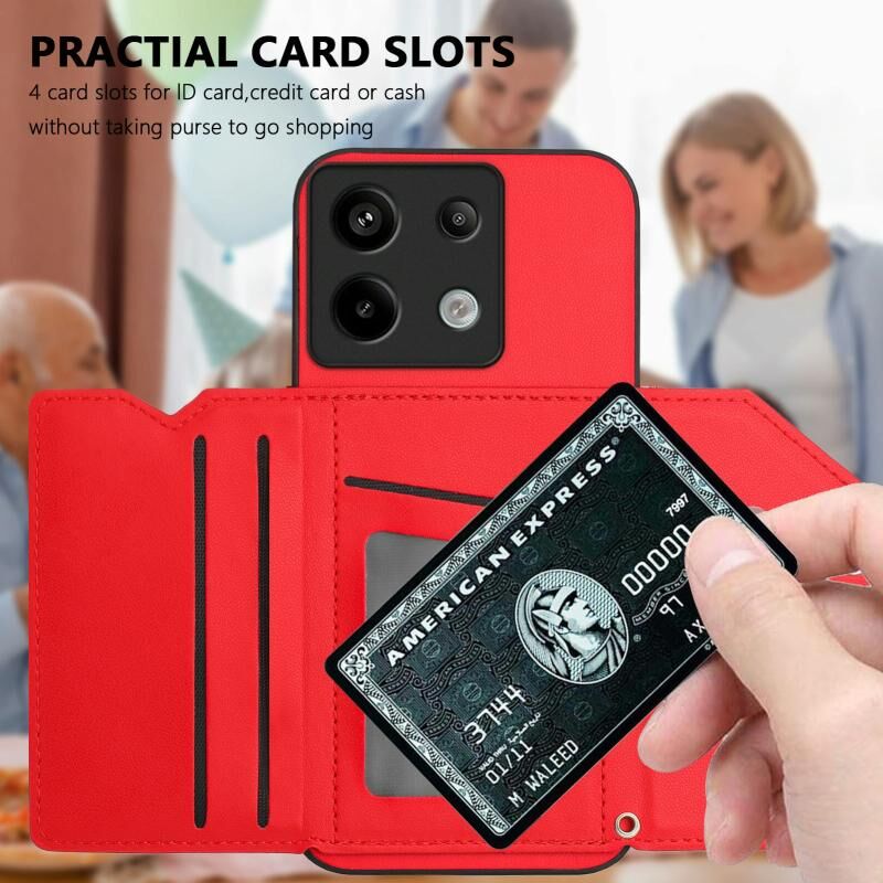 Για Xiaomi Poco X6 Skin Feel Τέσσερις υποδοχές καρτών υπόθεση τηλεφώνου με λουράκι καρπού (κόκκινο)
