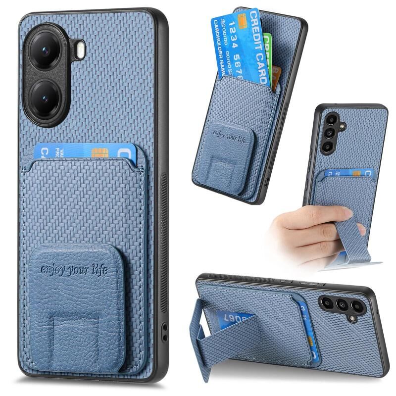 Θήκη τηλεφώνου για Xiaomi Poco X7 Pro από ανθρακονήματα με θήκη καρτών και βάση στήριξης (Μπλε)