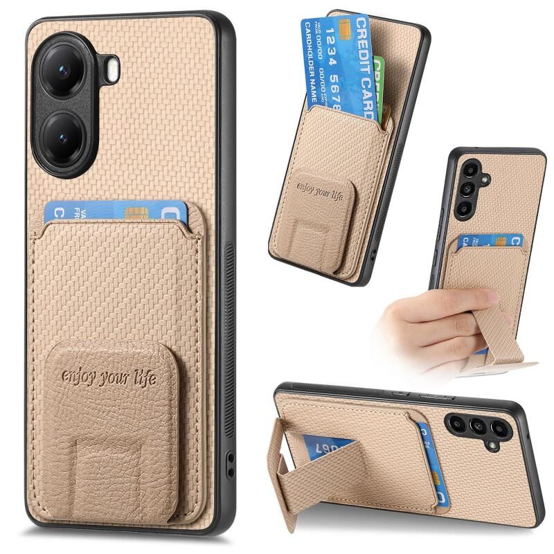 Θήκη τηλεφώνου για Xiaomi Poco X7 Pro από ανθρακονήματα με θήκη καρτών και βάση στήριξης (Μπλε)