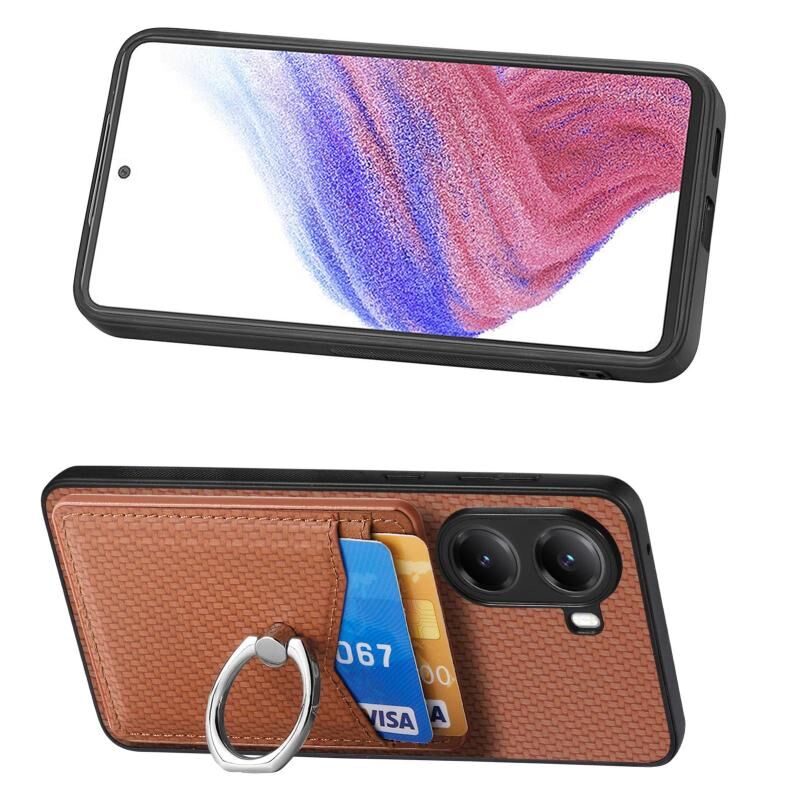 Θήκη τηλεφώνου για Xiaomi Poco X7 Pro από ανθρακονήματα με κάρτες και δακτύλιο (Μαύρο)