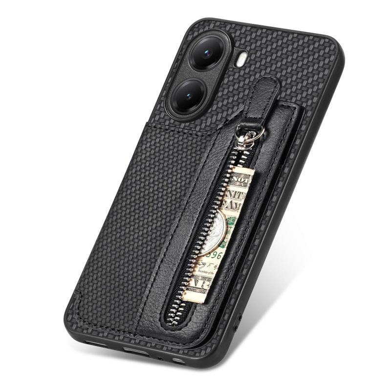 For Xiaomi Poco X7 Pro Carbon Fiber Horizontal Flip Zipper Wallet Phone Case(Black)