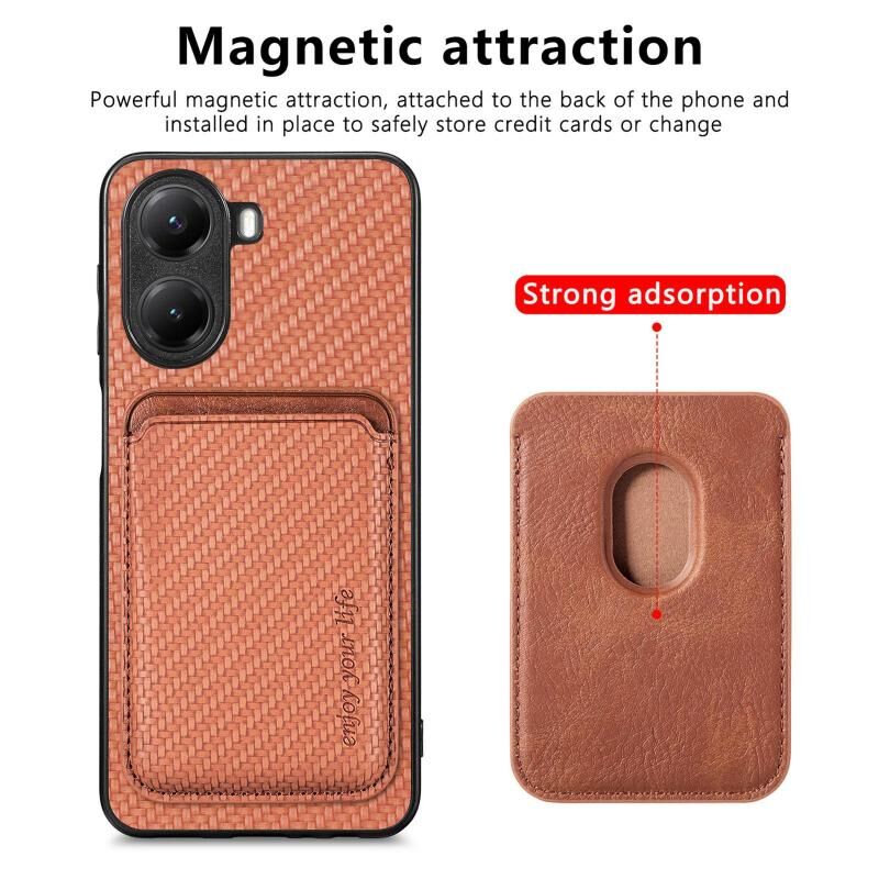 Θήκη τηλεφώνου Xiaomi Poco X7 Pro από ανθρακονήματα και δέρμα με μαγνητική βάση για κάρτες (Μαύρο)