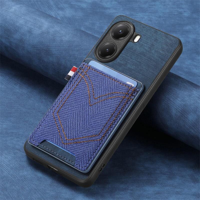 Θήκη τηλεφώνου από δέρμα με υφή denim για Xiaomi Poco X7 Pro με υποδοχή κάρτας (Μαύρο)