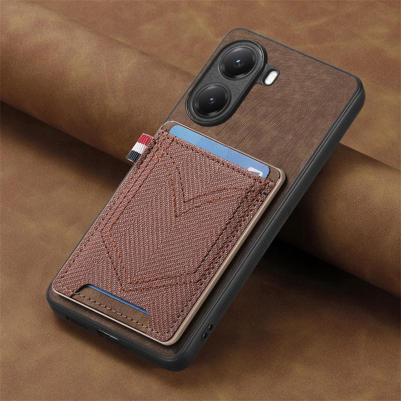 Θήκη τηλεφώνου από δέρμα με υφή denim για Xiaomi Poco X7 Pro με υποδοχή κάρτας (Μαύρο)