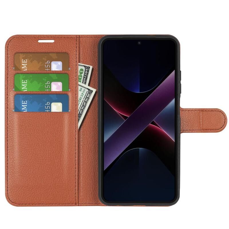 Για Xiaomi Poco X7 Pro Litchi υφή οριζόντια Flip δέρμα τηλέφωνο υπόθεση με θήκη (καφέ)