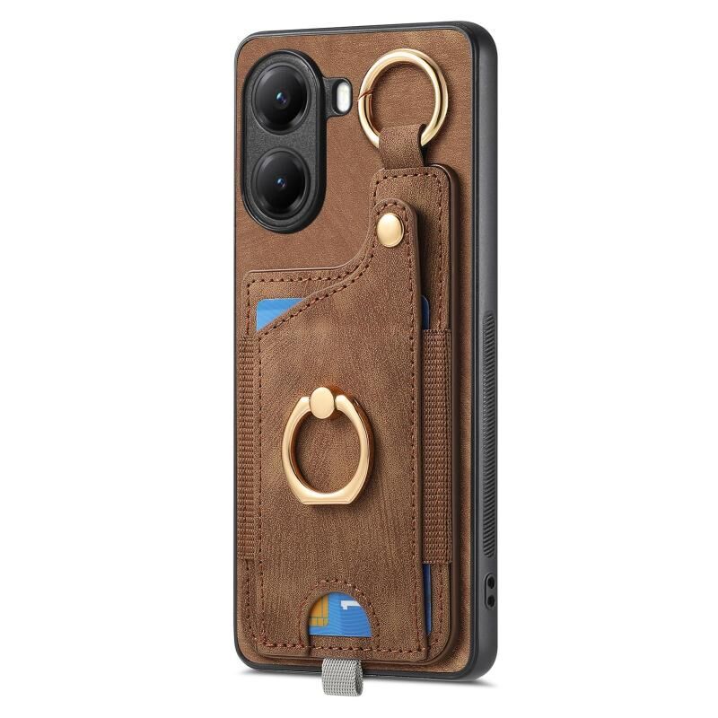 For Xiaomi Poco X7 Pro Retro Skin-feel Ring Card Bag Phone Case with Hang Loop(Brown)