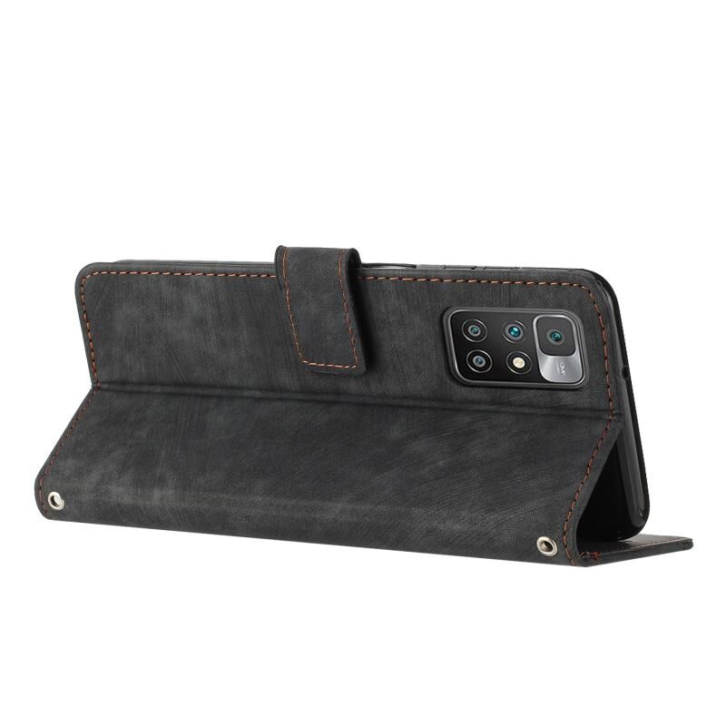 Για Xiaomi Redmi 10 / 10 Prime / 10 2022 δέρμα αίσθηση ριγέ μοτίβο δερμάτινη θήκη τηλεφώνου με κορδόνι (μαύρο)