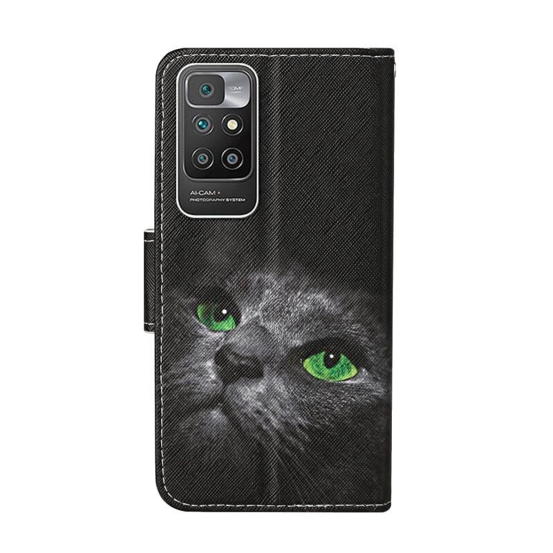 Θήκη δέρματος με σχέδιο ζωγραφικής και αναδιπλούμενο καπάκι για Xiaomi Redmi 10 2022 (Μαύρη Γάτα)