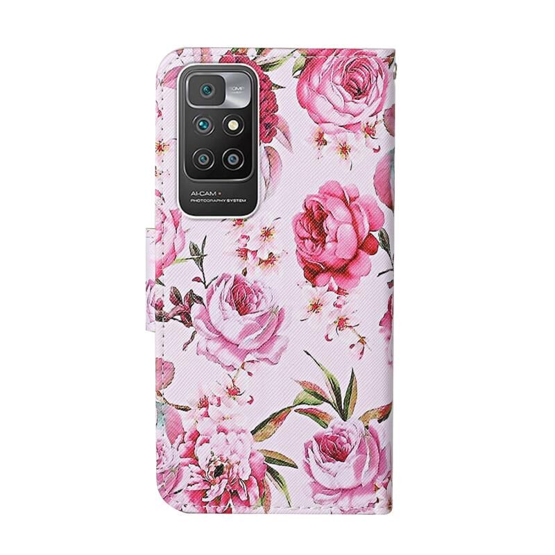 Θήκη δέρματος με σχέδιο πολύχρωμης ζωγραφικής τύπου flip για Xiaomi Redmi 10 2022 (Παιώνια)