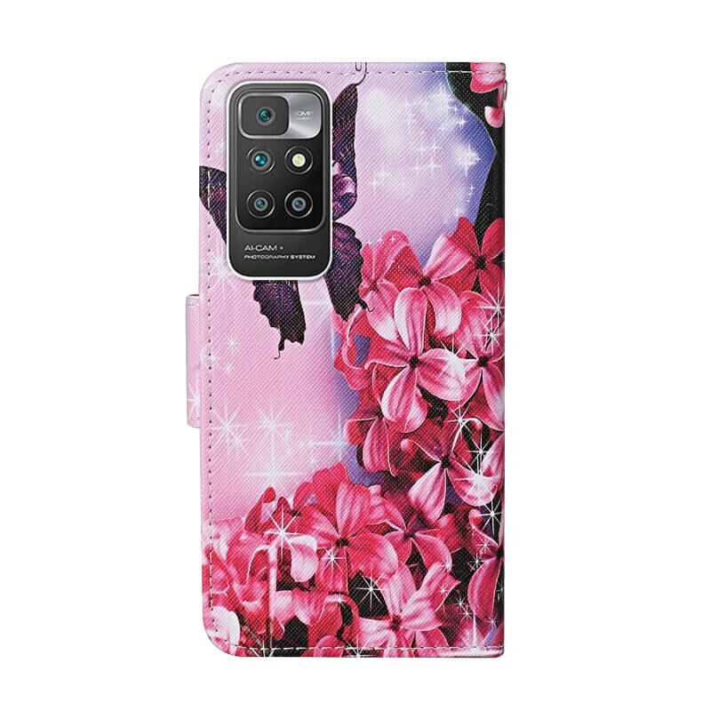 Θήκη δέρματος με σχέδιο ζωγραφικής και χρώματα, τύπου flip, για Xiaomi Redmi 10 2022 (Κόκκινο Λουλούδι Πεταλούδα)