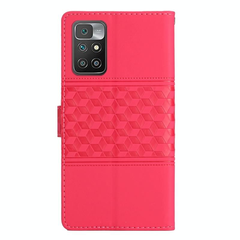 Για Xiaomi Redmi 10 2022 Diamond ανάγλυφο δέρμα αίσθηση δερμάτινη θήκη τηλεφώνου με κορδόνι (κόκκινο)