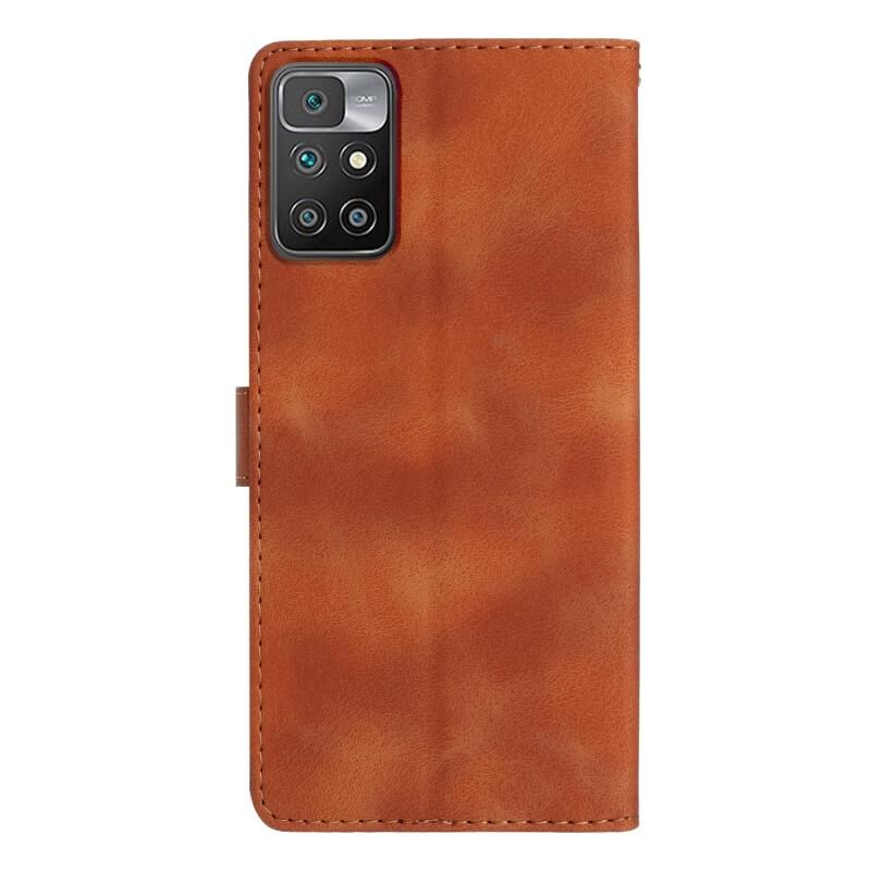Για Xiaomi Redmi 10 2022 λουλούδι πεταλούδα ανάγλυφο μοτίβο δερμάτινη θήκη τηλεφώνου (καφέ)