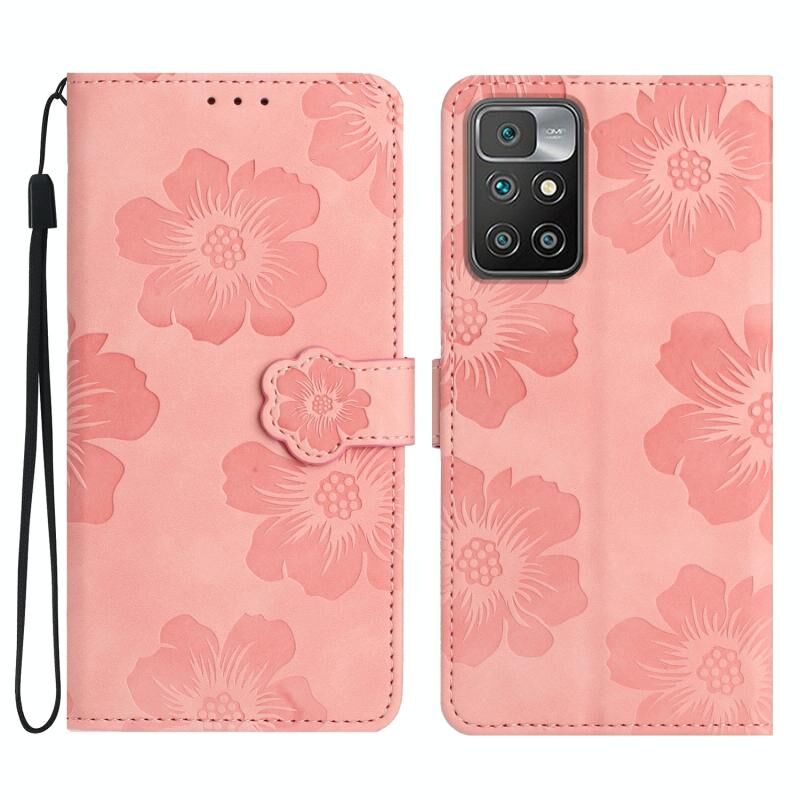 Για Xiaomi Redmi 10 2022 λουλούδι ανάγλυφο μοτίβο δερμάτινη θήκη τηλεφώνου (ροζ)