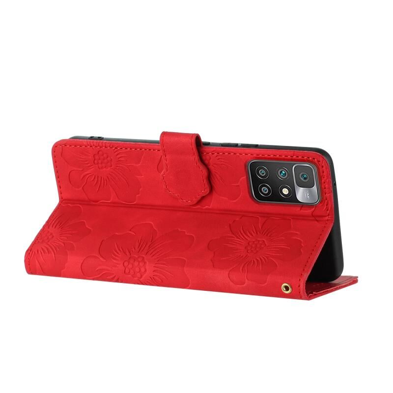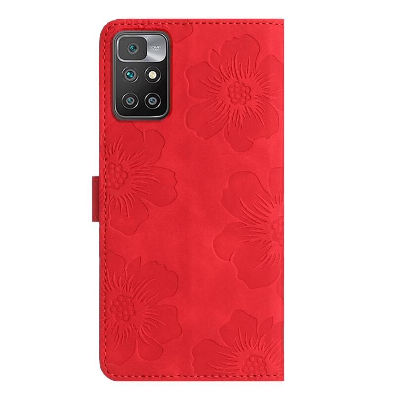 Για Xiaomi Redmi 10 2022 λουλούδι ανάγλυφο μοτίβο δερμάτινη θήκη τηλεφώνου (κόκκινο)
