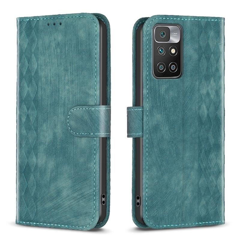 Για Xiaomi Redmi 10 2022 καρό ανάγλυφη δερμάτινη θήκη τηλεφώνου (πράσινο)