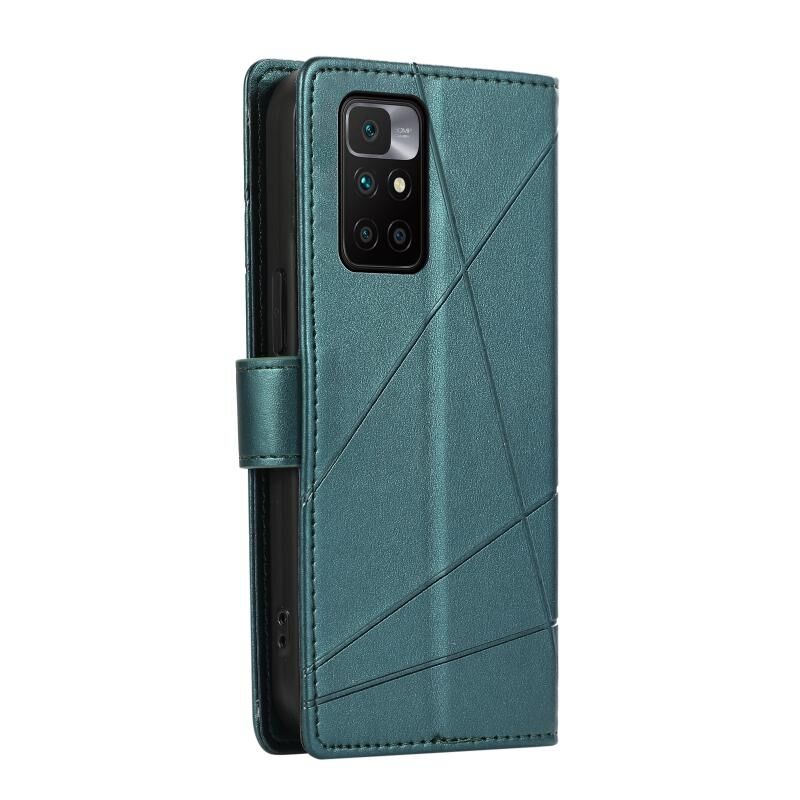 For Xiaomi Redmi 10 2022 PU Genuine Leather Texture Embossed Line Phone Case(Green)