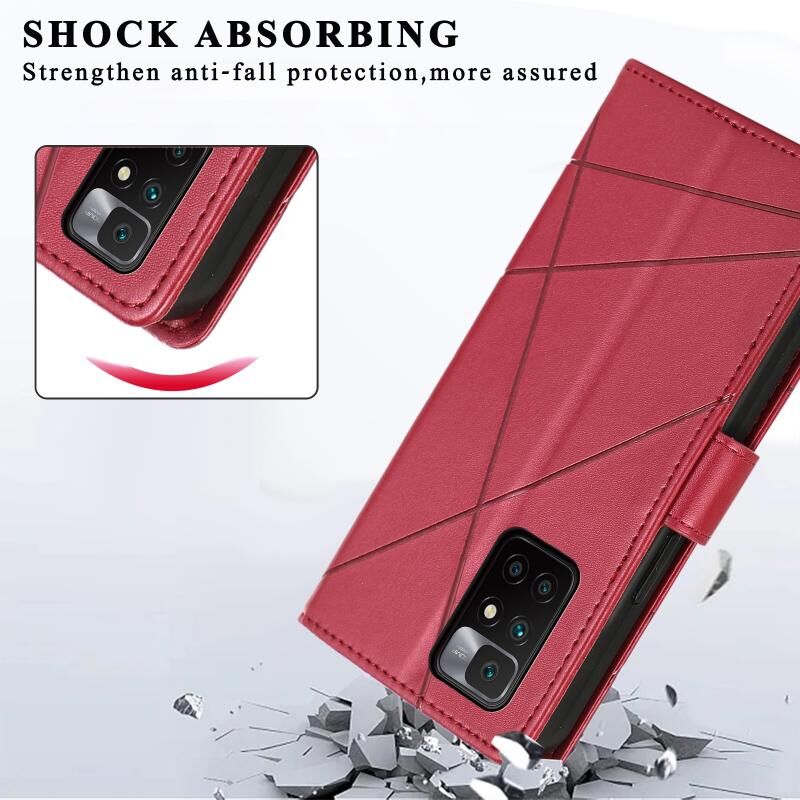 For Xiaomi Redmi 10 2022 PU Genuine Leather Texture Embossed Line Phone Case(Red)