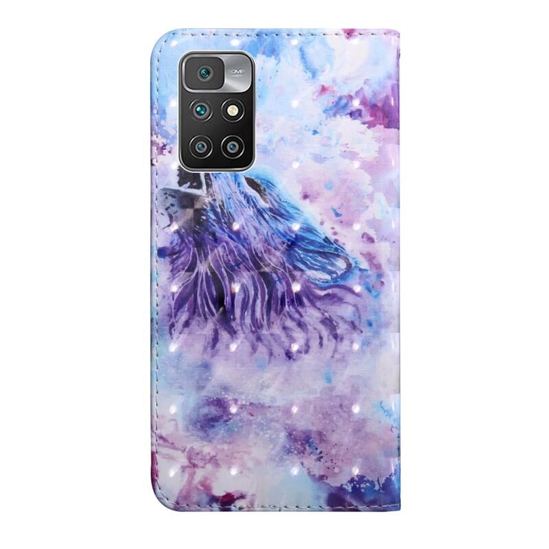Θήκη τηλεφώνου δερμάτινη με σχέδιο 3D ζωγραφικής και πολύχρωμη απεικόνιση (Λύκος που ουρλιάζει) για Xiaomi Redmi 10.