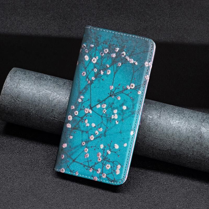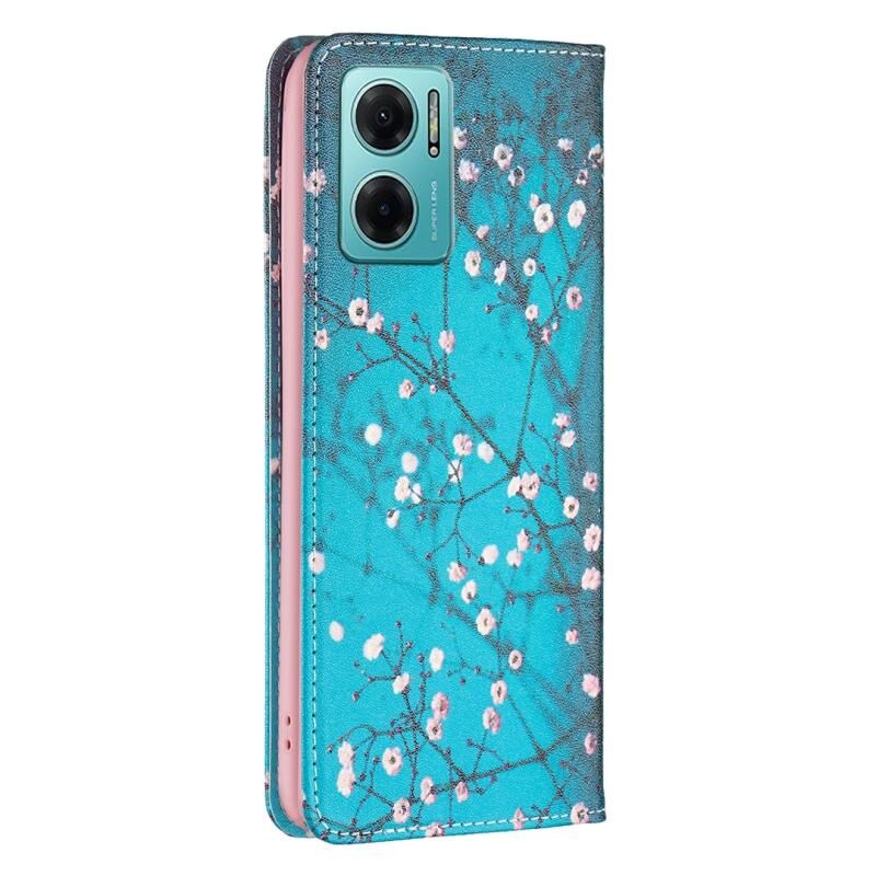 Θήκη τηλεφώνου από δέρμα με αόρατο μαγνητικό σχέδιο για Xiaomi Redmi 10 5G / Note 11E (Λουλούδι Δαμασκηνιάς)