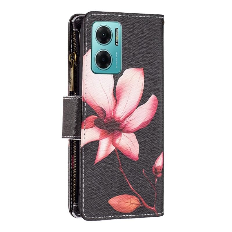 Θήκη τηλεφώνου από δέρμα με φερμουάρ και πολύχρωμο σχέδιο για Xiaomi Redmi 10 5G / Note 11E (Λωτός)