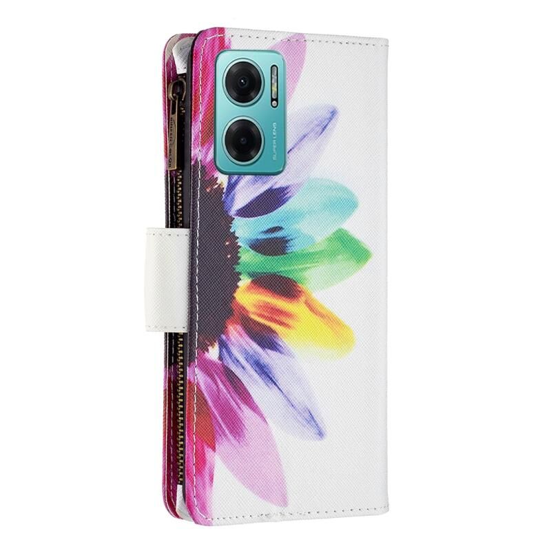Θήκη τηλεφώνου από δέρμα με φερμουάρ και πολύχρωμο σχέδιο για Xiaomi Redmi 10 5G / Note 11E (Κόκκινο)