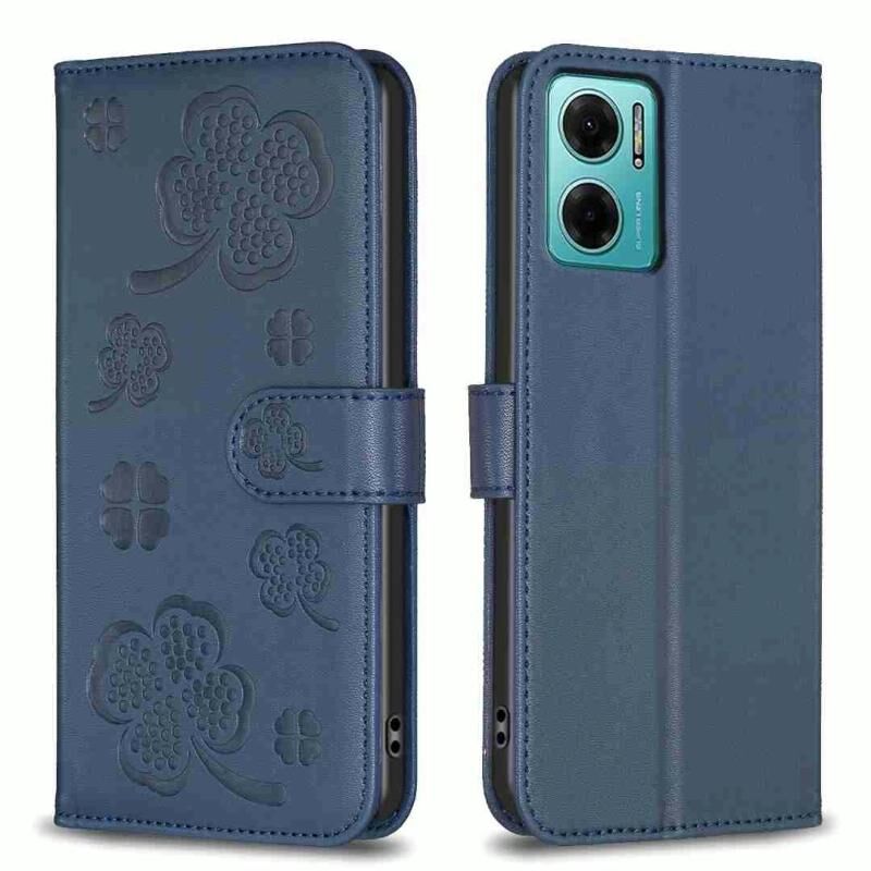 Για Xiaomi Redmi 10 5G / Note 11E τετράφυλλο ανάγλυφη δερμάτινη θήκη τηλεφώνου (μπλε)