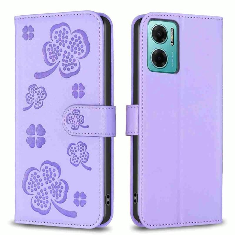 Για Xiaomi Redmi 10 5G / Note 11E τετράφυλλο ανάγλυφη δερμάτινη θήκη τηλεφώνου (μωβ)