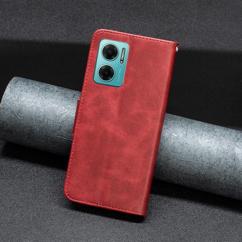 Θήκη τηλεφώνου από γνήσιο δέρμα με υφή αρνιού, σε καθαρό χρώμα, για Xiaomi Redmi 10 5G / Note 11E (Κόκκινο)