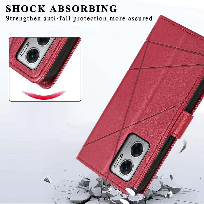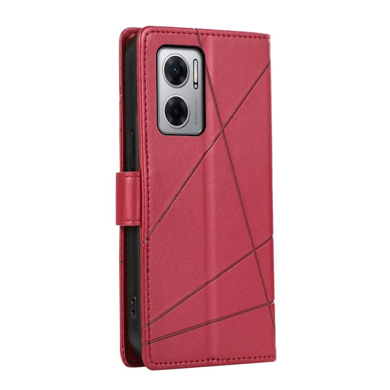 For Xiaomi Redmi 10 5G PU Genuine Leather Texture Embossed Line Phone Case(Red)