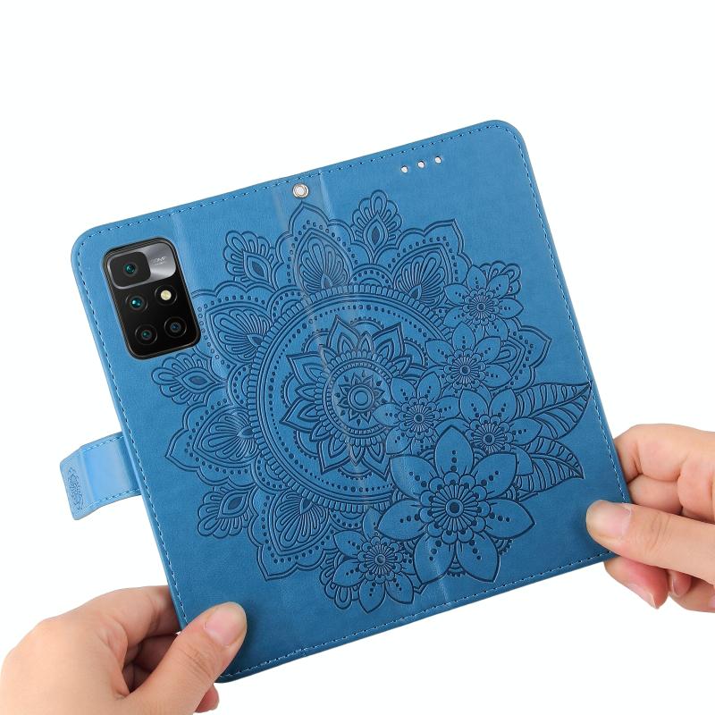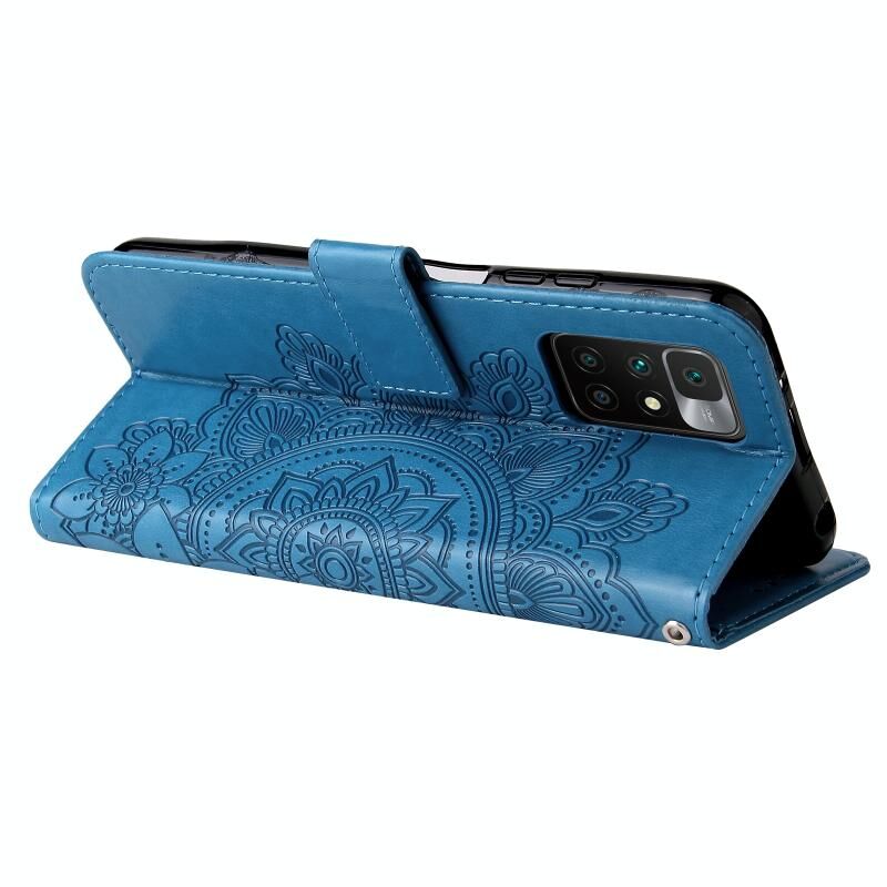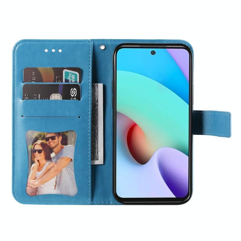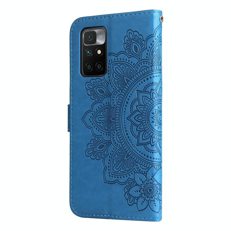 For Xiaomi Redmi 10 7-petal Flowers Embossing Pattern Horizontal Flip PU Leather Case with Holder & Card Slots & Wallet & Photo Frame(Blue)