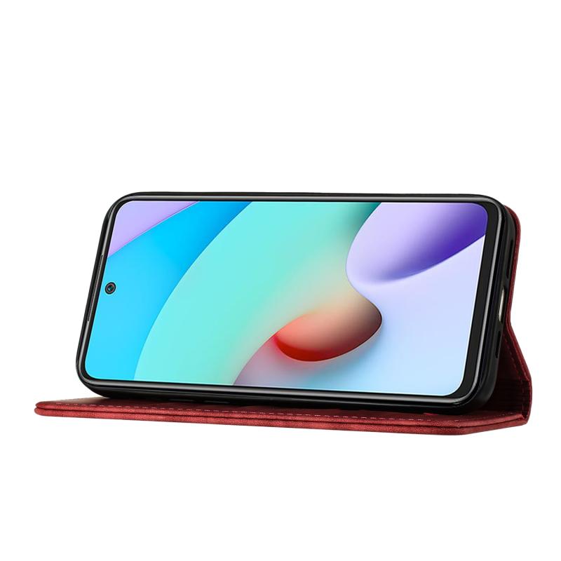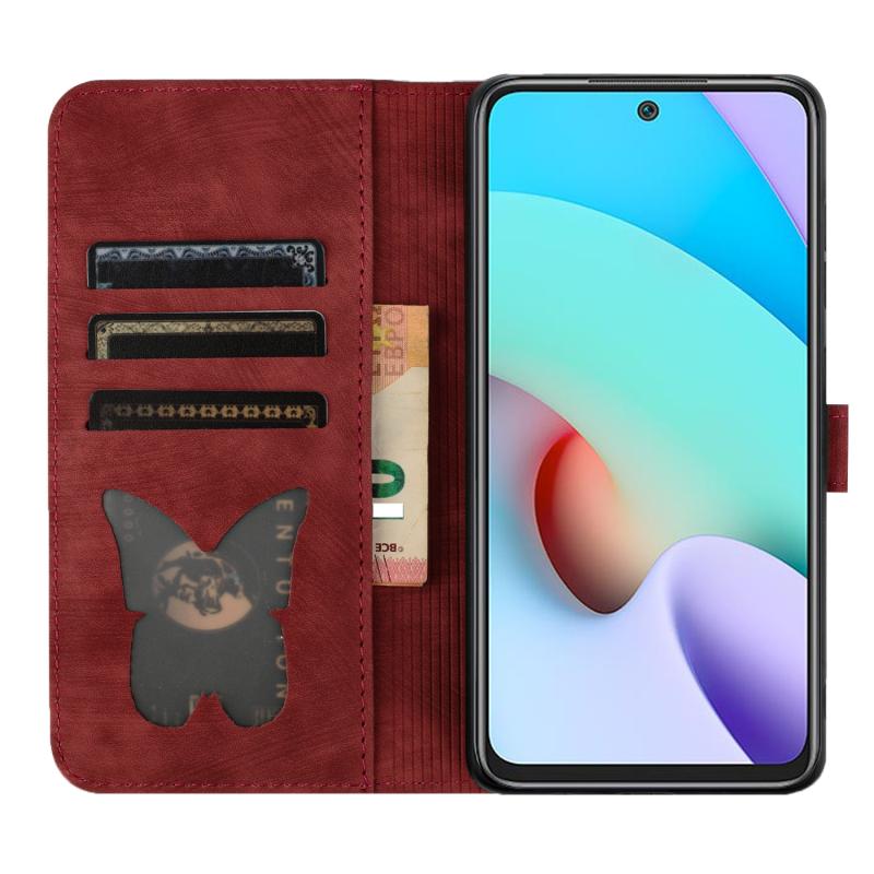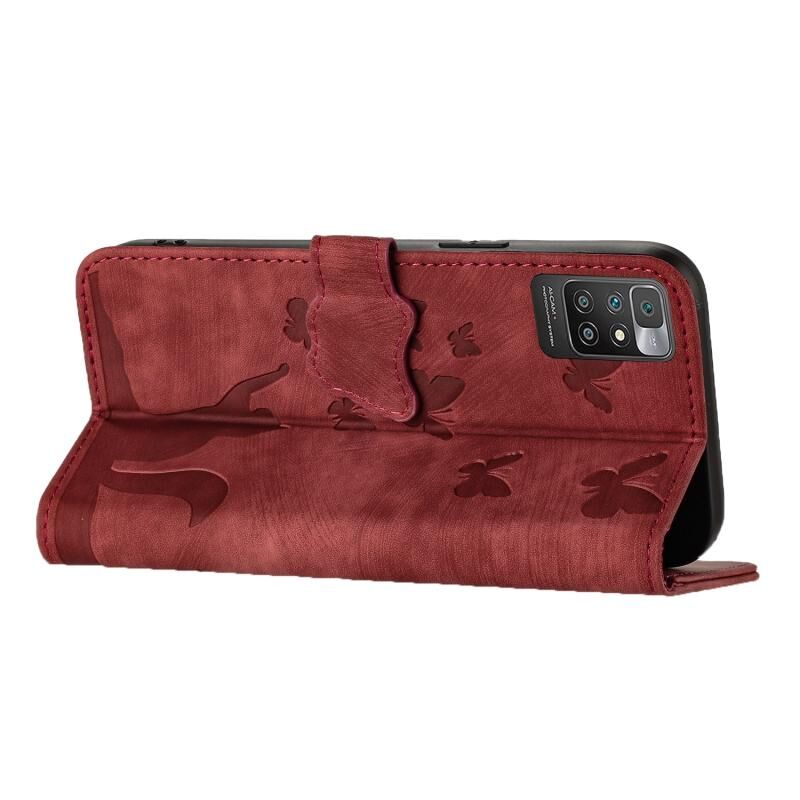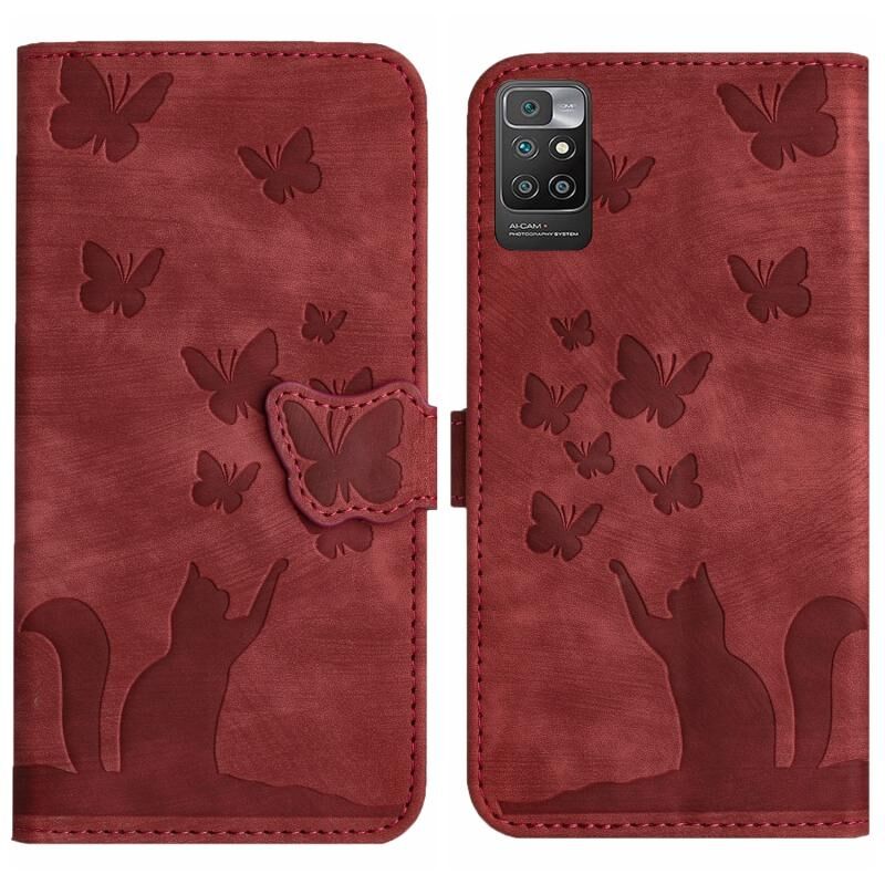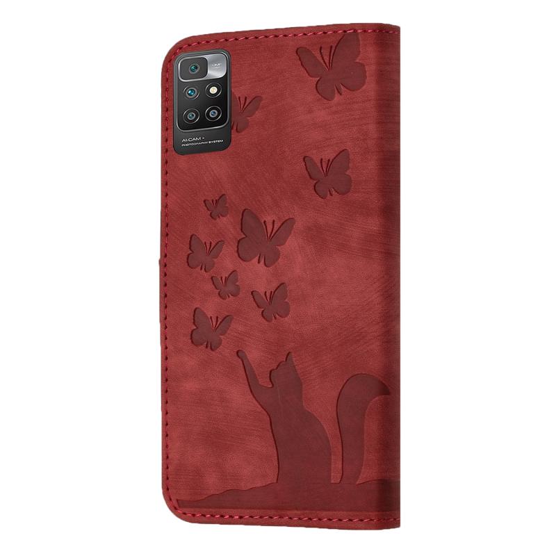Θήκη δερμάτινη flip με ανάγλυφο σχέδιο γάτας για Xiaomi Redmi 10 (Κόκκινο)