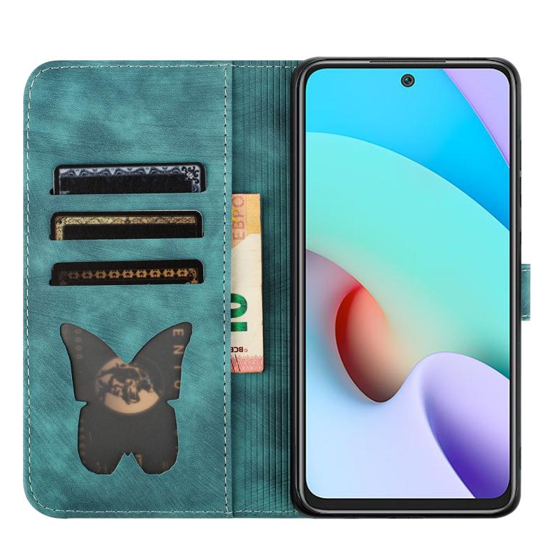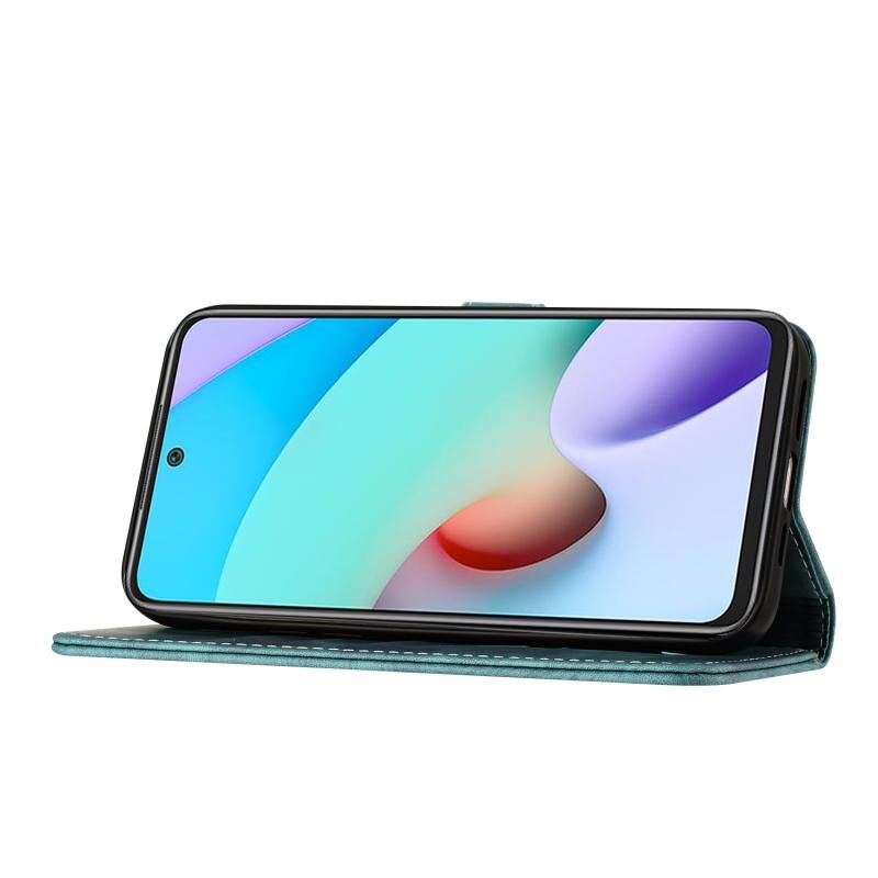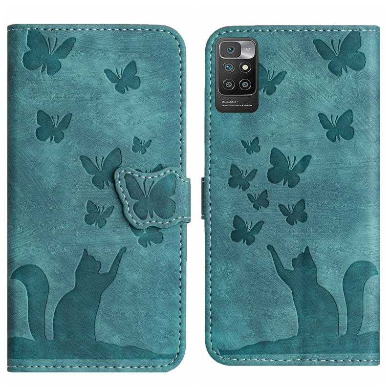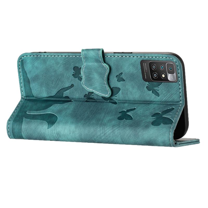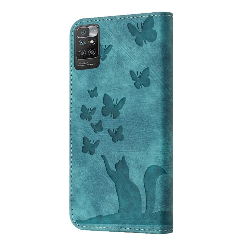 Θήκη δερμάτινη flip με ανάγλυφο σχέδιο γάτας για Xiaomi Redmi 10 (Wathet)