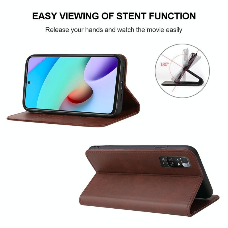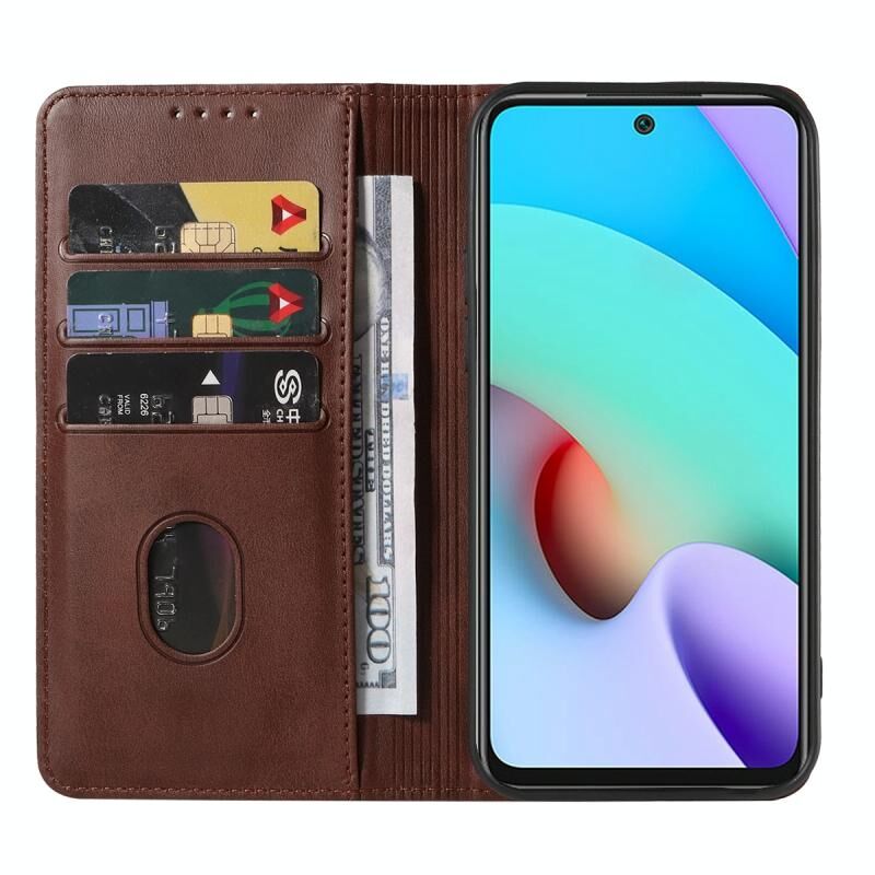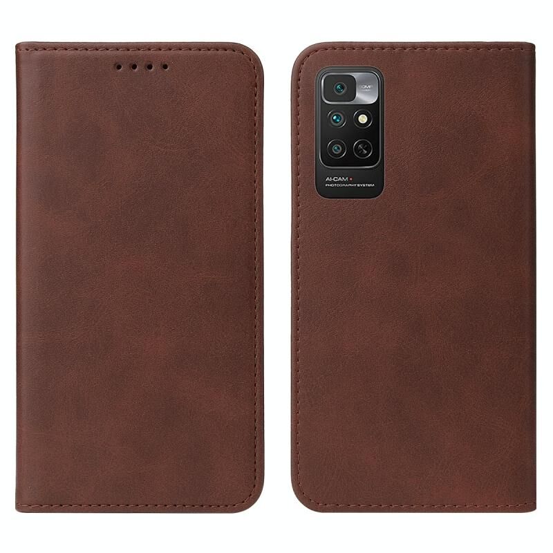 Για Xiaomi Redmi 10 Κίνα / Σημείωση 11 4G Κίνα Μαγνητικό κλείσιμο δερμάτινη θήκη τηλεφώνου (καφέ)
